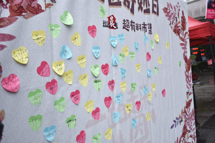 市集上兜了一圈后,小朋友们拿着集满印章的邀约券来到服务中心,领了一张爱心便利贴,写上想对爸爸妈妈说的话,筑起了一道爱心感恩墙。“社区奇妙日,超有料市集”也在孩子们诉说感恩之心的温暖中落下了帷幕。