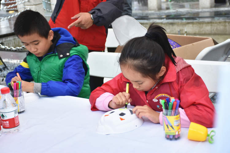 在迷你高尔夫的摊位上,“你花我猜”的游戏增近了家长和小朋友间的感情,更考验了彼此间的默契度。