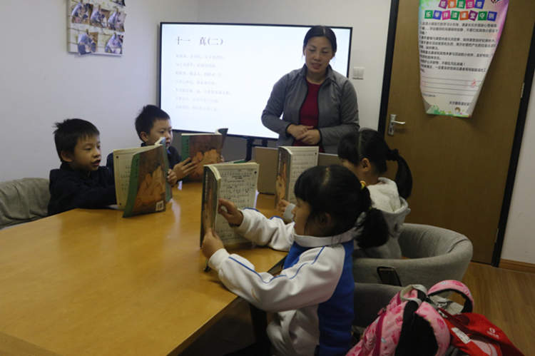 每周二下午5:00-6:00,大宁路街道社区服务中心4楼的亲子活动室都传出一片诵读之声。“天对地,雨对风。大陆对长空。山花对海树,赤日对苍穹。”