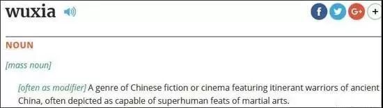 “wuxia”(武侠):一种专门描写中国古代流动勇士的中国小说或电影类型,角色通常具有超人的武功。