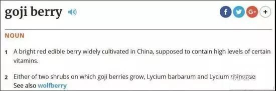 著名养生网红“goji Berry”(枸杞):一种鲜红色的可食用浆果,在中国广泛种植,某些维生素的含量很高。