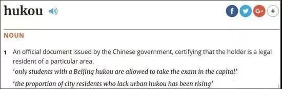 “hukou”(户口):中国政府发布的官方文件,证明持有人是特定地区的合法居民。