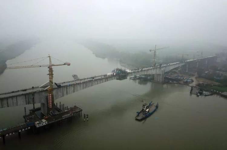 周到君了解到,商合杭铁路跨淮河特大桥位于安徽寿县境内,为目前高速铁路无砟轨道连续刚构拱桥世界第一。