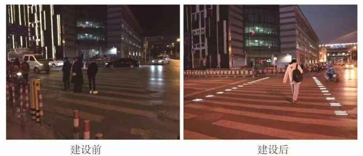 眼下,这一智能人行横道线已经试点应用在政通路国济路交叉口处。每当行人进入智能人行横道探测区域时,由雷达探测器控制的横道线发光地砖会迅速亮起,在夜间照明不足的情况下也能提示来往车辆“礼让行人”。