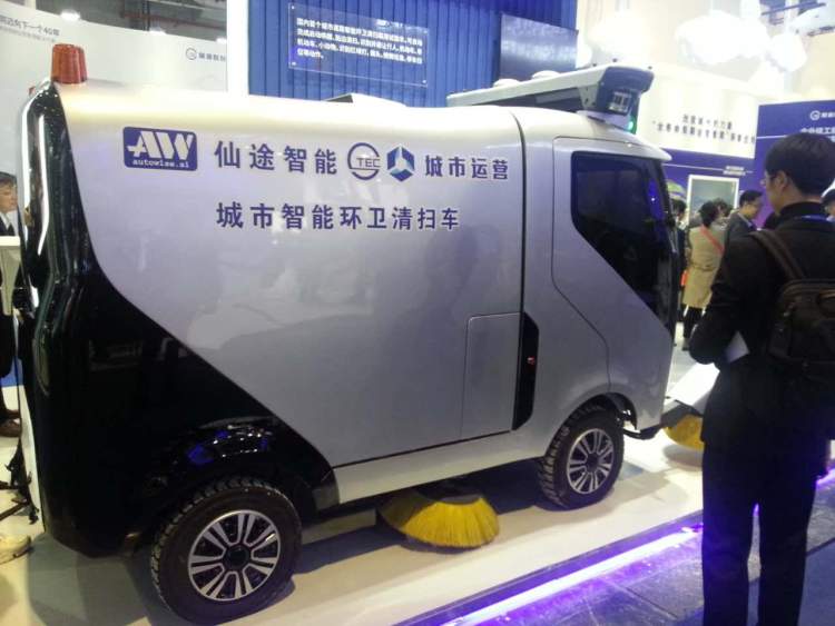 上图为在展会上亮相的无人驾驶清扫车