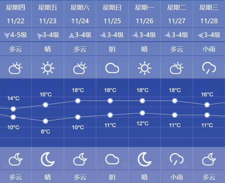 周末及下周初,白天最高预计可达18℃,最低也会基本回暖到10℃以上。