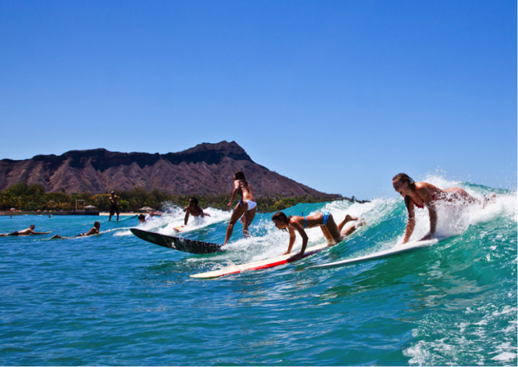 对于喜爱运动的游客则可以选择户外运动游,威基基海滩是举世闻名的冲浪胜地,在这里可以由专业教练带领,尝试驰骋浪尖的乐趣。