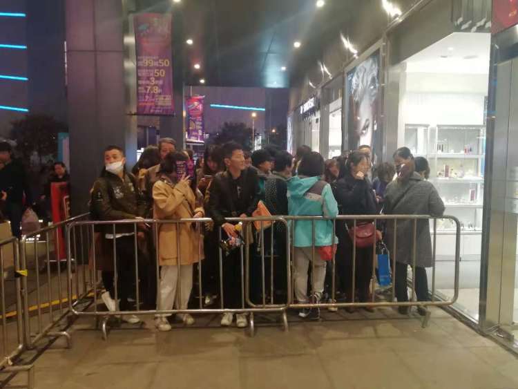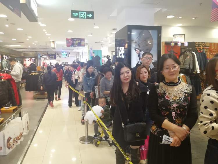 今天晚些时候,巴黎春天五角场店除了北门以外的其他大门就封闭了。北门外拦好排队隔离栏,等待参加不打烊活动的顾客们开始在排队区等待。