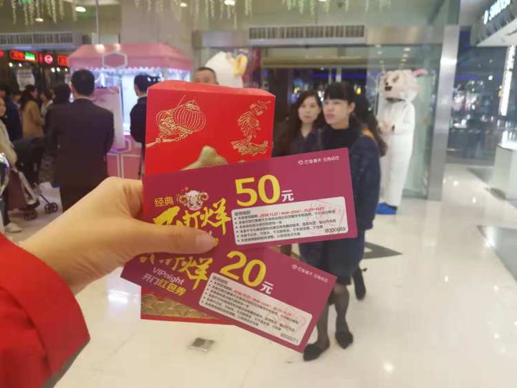 领到红包的顾客向周到君展示,红包内的是购物抵用券,有人拿到了20元的,有人拿到了50元的。