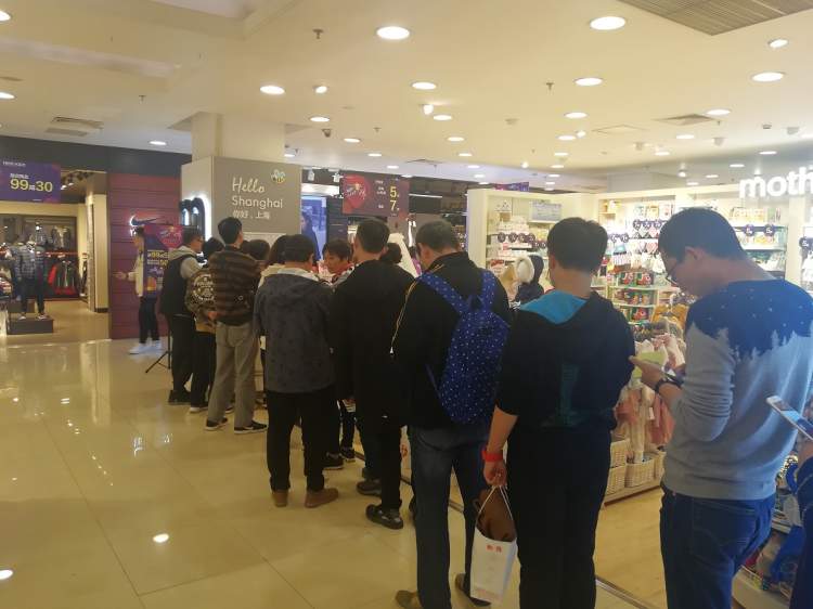 今晚的儿童用品区域,购买者也排起了长队。