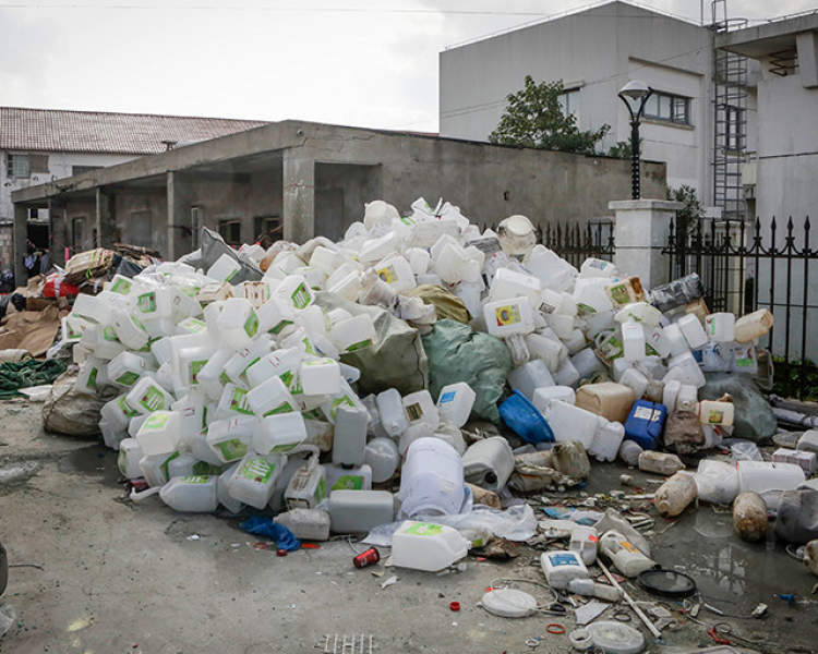 一些原本密封在塑料容器里面的化学品残液,在打包时,经过强力压缩,被挤压出来,挥发在空气里,随风飘荡,我们都成了受害者。