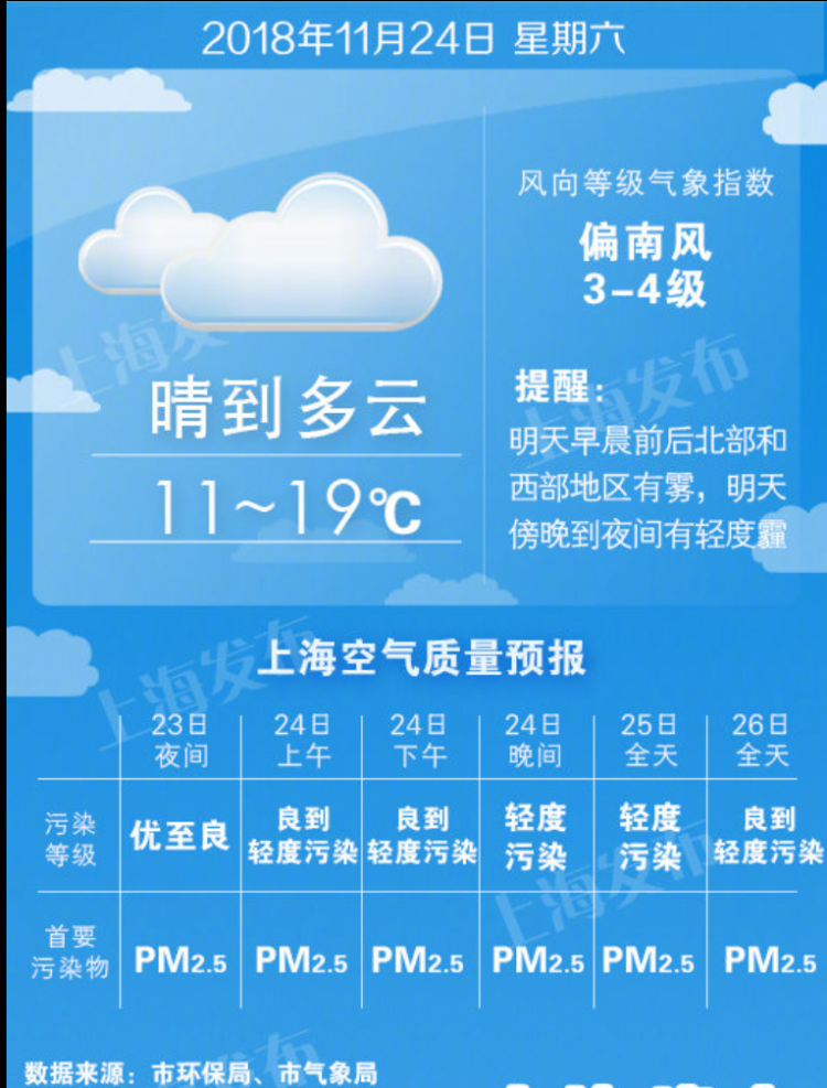 上海明天这天气肿么了!早上有雾,傍晚还有霾…… 周到君 2018-11-23 来源:周到上海 上海今天的天气还不错哦,阳光下暖暖的,徐家汇最高温度16.1℃。可明天的天气就没这么好了…… 明天早晨前后北部和西部地区有雾,明天傍晚到夜间有轻度霾,提醒需要早出、晚归的朋友注意。 气温方面,明天最高气温将升至19℃,最低温也将逐步走高,周一达到14℃。 周二开始下雨,最低温又将回到11℃附近。 大家早晚还是要注意保暖,及时增减衣物哦! 来源:周到上海 作者:周到君 赞一个 (0)