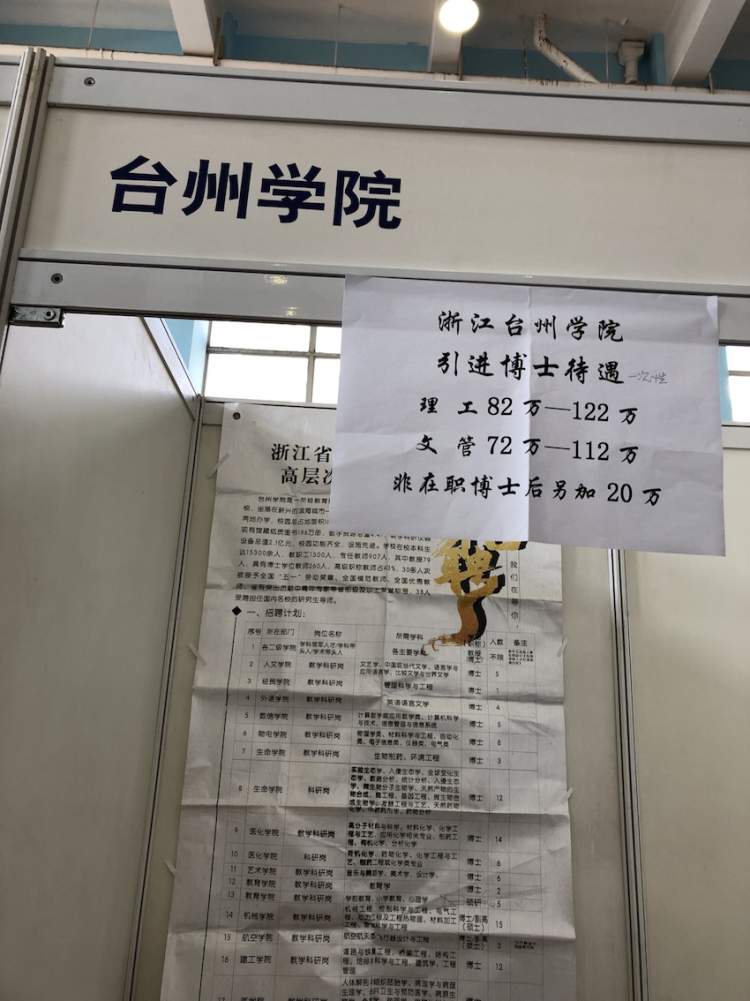 “这是我们学校第一年出台这样的招聘政策,明年的薪酬标准可能还要高,现在还不好说。这一切都是为了吸引高水平的人才。”台州学院的招聘老师告诉记者,今明两年学校目标都是要各招到100名博士,如果还有更好的人才,人数也会放宽。