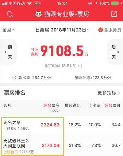 一般院线商业大片都能首日破亿,前几周上映的《毒液》在首日中午票房就已过亿。而现在,离今天结束只剩了6小时不到了,看来破坏王离爬上过亿还差远着。