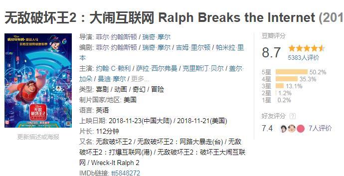 从《无敌破坏王2》豆瓣上标记的想看标签,就可以看到粉丝有多期待第二部。
