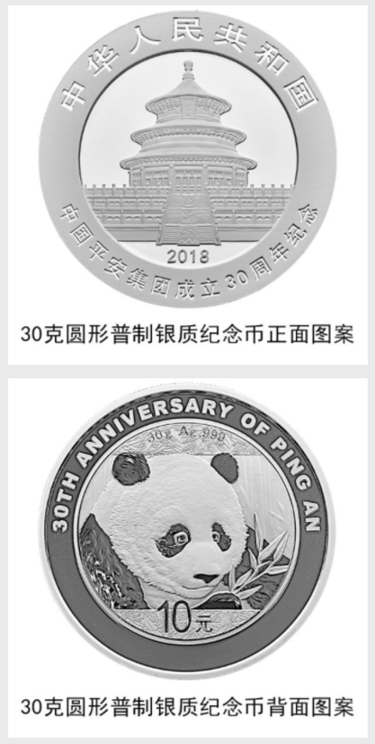 据央行官网昨日晚间消息,中国人民银行定于2018年11月26日发行中国平安集团成立30周年熊猫加字金银纪念币一套。该套金银纪念币共2枚,其中金质纪念币1枚,银质纪念币1枚,均为中华人民共和国法定货币。