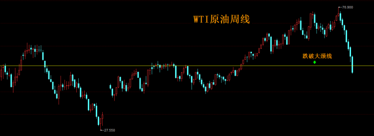 周到君近期一直在跟踪原油的技术面走势,从周线观察,空头施行反技术走势,隔夜直接打破强力支撑线,即大颈线(见下图),就技术角度而言,空头似乎步入无人区,多头只有死给你们看!
