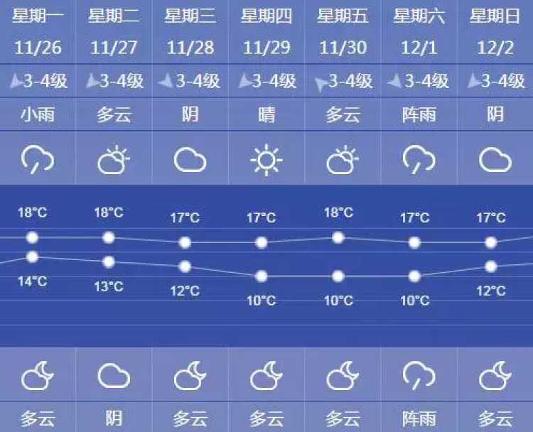 明天最低气温14℃,最高气温在18℃左右;东北到东风3-4级。