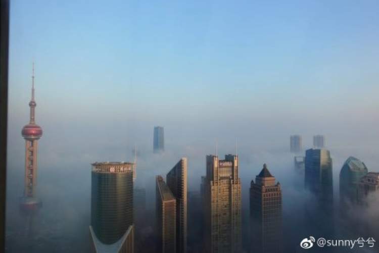 网友们纷纷拍下雾中魔都的景象。