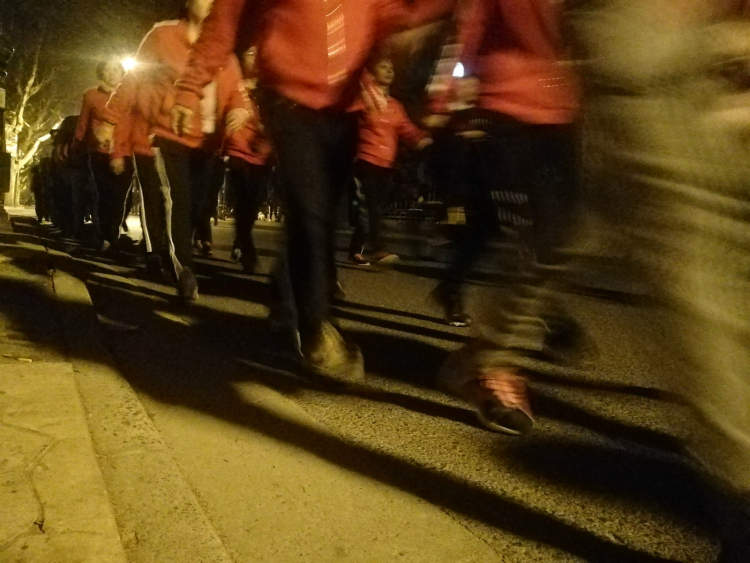 “一、二、三、四……”11月22日晚7点,记者来到了苏家屯路,刚到路口,迎面便走来一支喊着口号的健步走队伍。