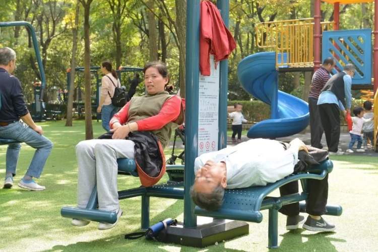 莘城中央公园的健身器材区也进行了改建。