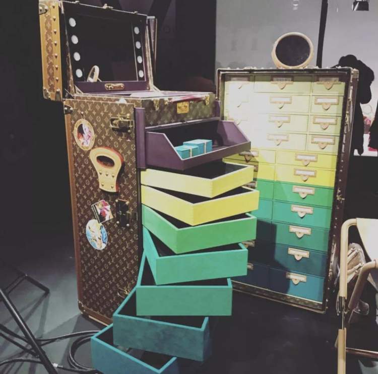 不仅如此,过去的上流社会少妇少女们还可以拥有自己的“化妆台”旅行箱,把全套化妆品打包带走。而且因为是特别制造的,有一层层小方格抽屉的保护在,想必就算是长途颠簸也不用担心了。