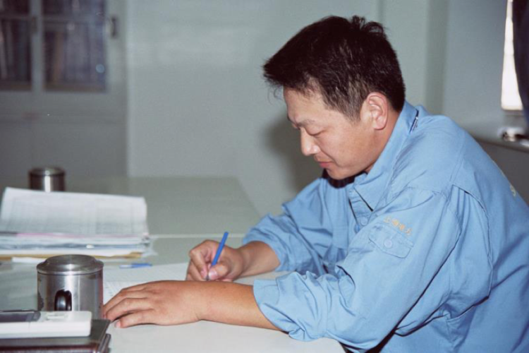 ■2005年,卢海军正在查阅资料,对施工工艺进行改进