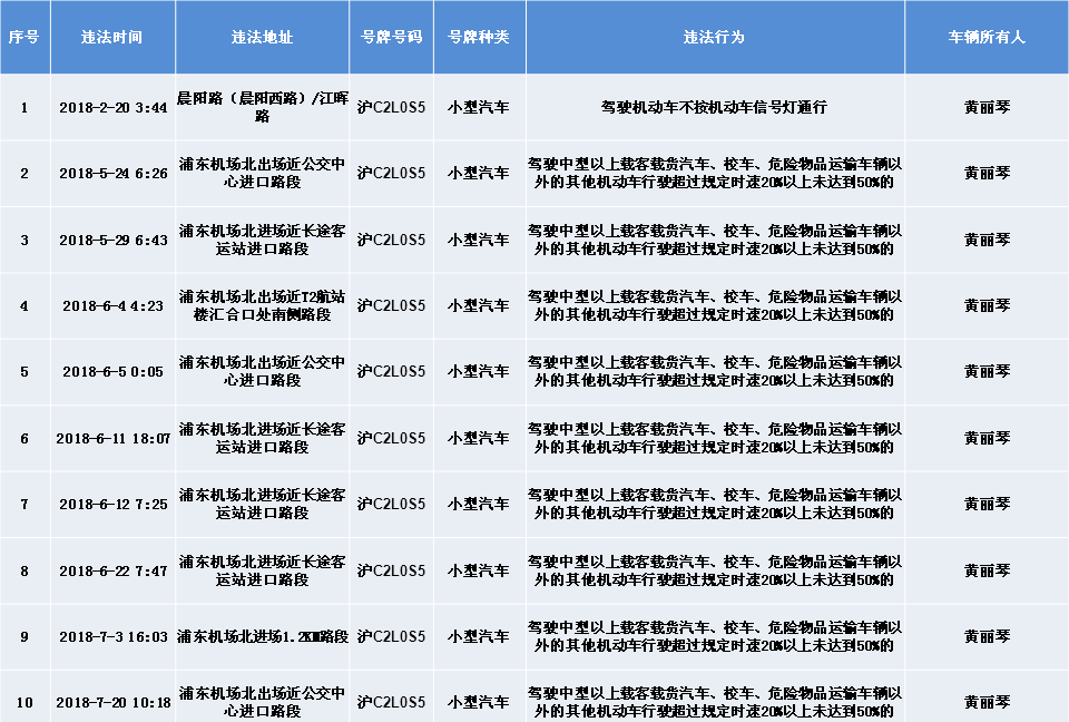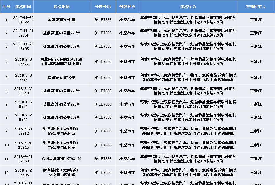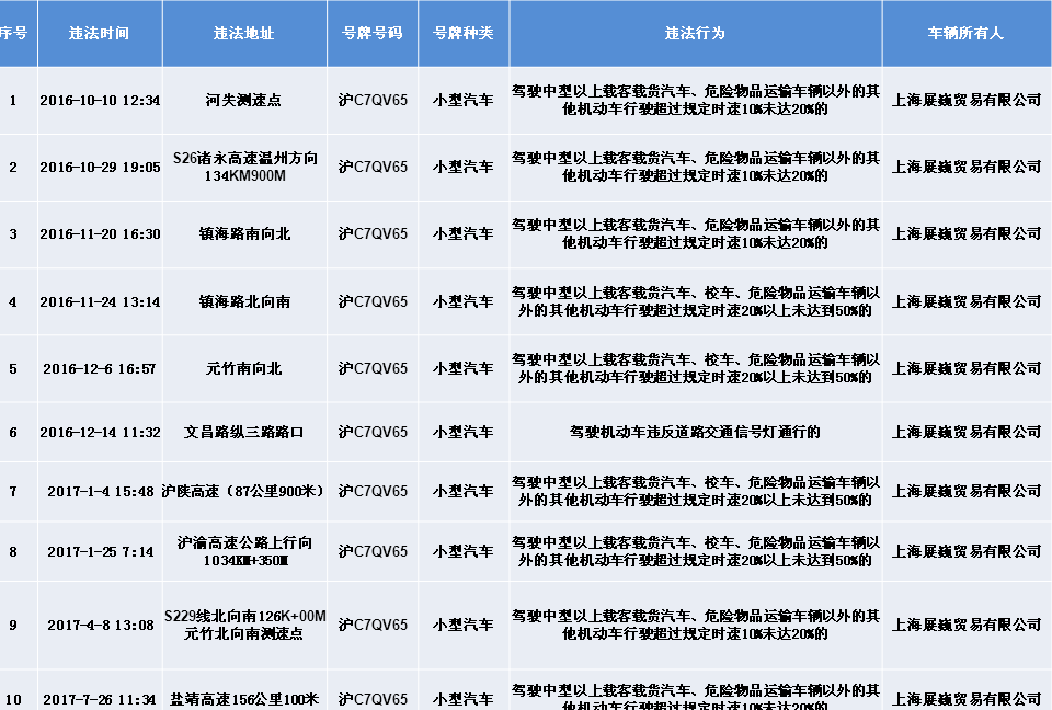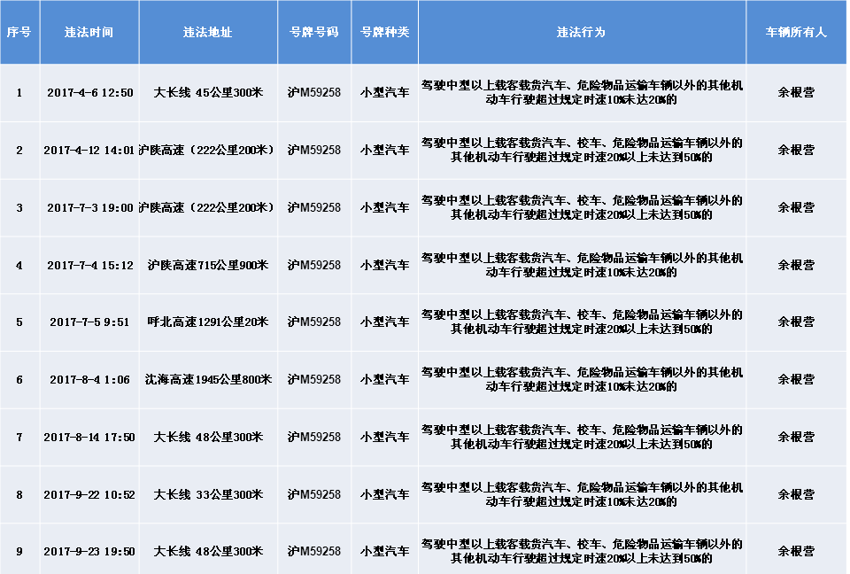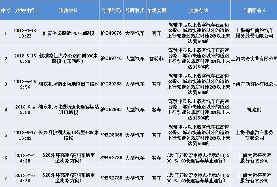 “三超一闯(超速、超员、超载和闯红灯)”违法突出车辆名单