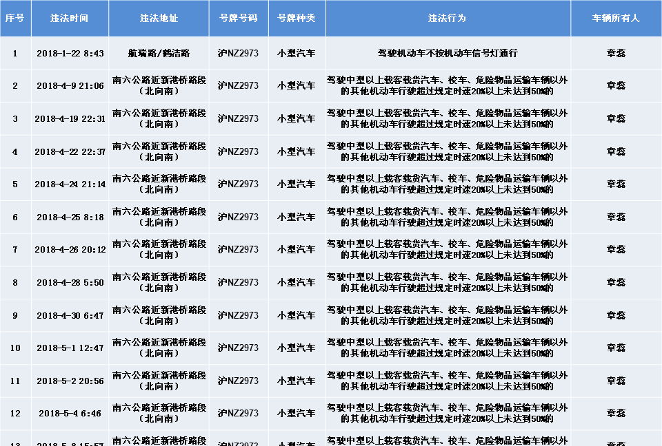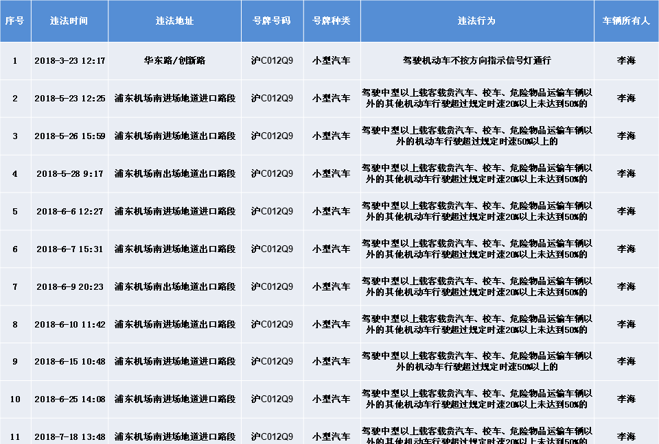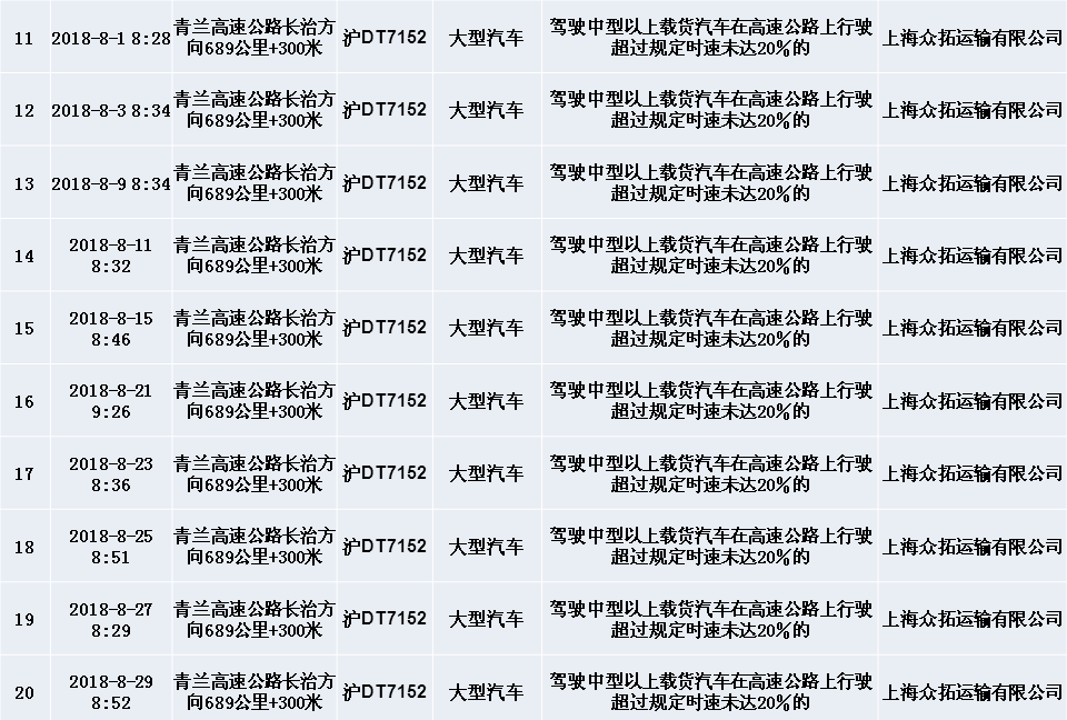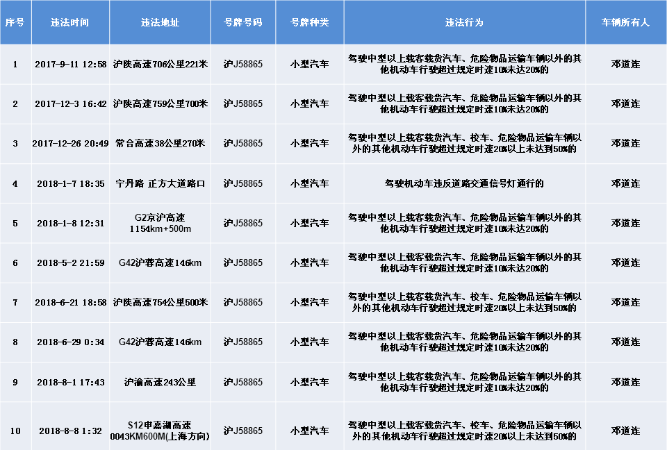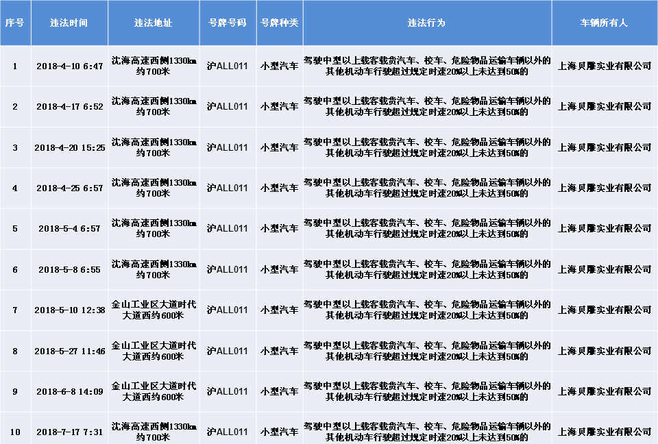 “三超一闯(超速、超员、超载和闯红灯)”违法突出车辆名单