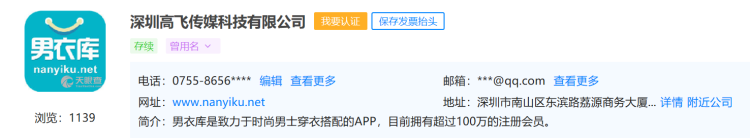 实缴资本无显示,记者注意到,这家公司被深圳高飞传媒科技有限公司100%控股,而深圳高飞传媒科技有限公司的简介又是一个叫男衣库的APP。