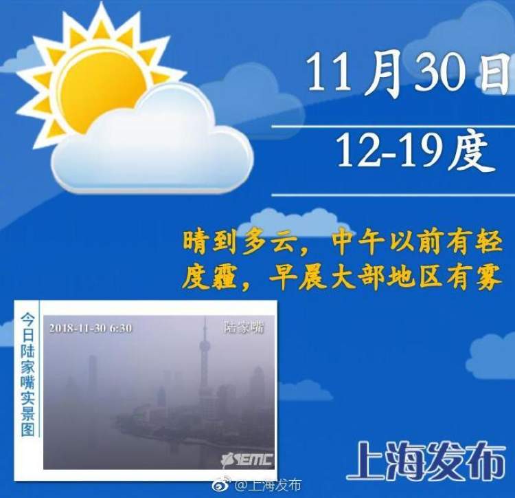 今天本市依然是晴到多云天气,预计今天中午以前有轻度霾,早晨大部地区有雾,出行还是要注意防范。最低气温在12度左右,最高气温在19度上下。周六云系有所增多,气温变化平稳,保持在13-20度之间。周日至下周初,本市将转为阴雨天气。下周二前后受冷空气影响,将有一次降水、降温和大风过程。