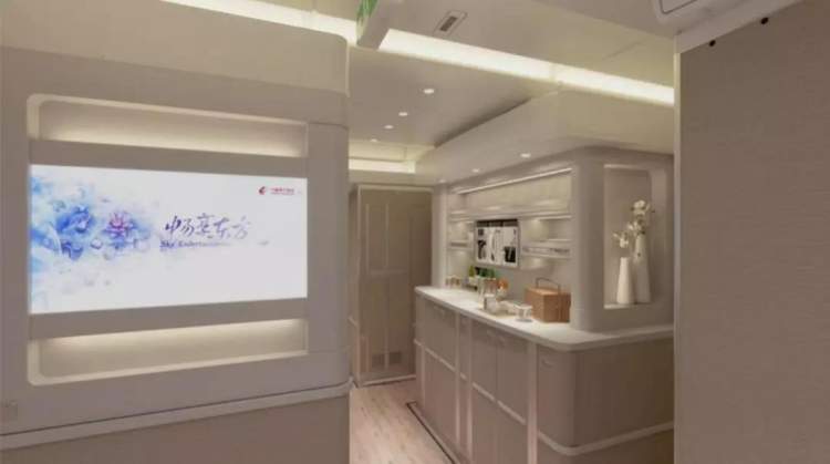 作为东航新旗舰,2号门区域还首次配置了全功能吧台,提供多种餐饮服务,吧台区独创性设计了超大容积冷藏柜,可以提供冷藏软饮、果汁、新鲜水果和葡萄酒。