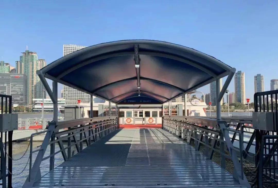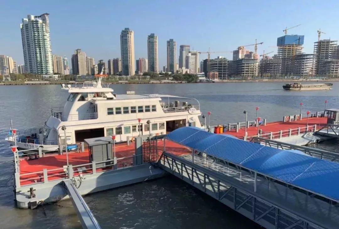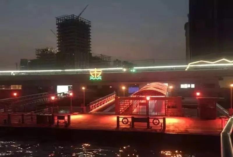 随着浦江两岸灯光照明建设工程的完成,夜晚坐在渡船上看到新渡口也别有一番风情。