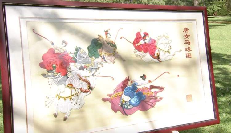 △习近平赠送给马克里的《唐女马球图》。(视频截图)