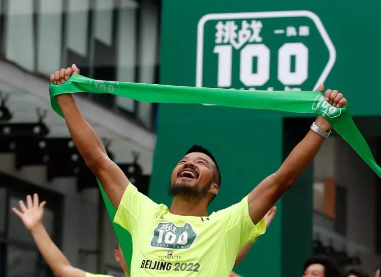2015年4月,陈盆滨开启了一个更大的挑战:挑战100——连续100天100个马拉松,起点在广州亚运会开幕式的举办地海心沙,至北京奥运会场馆五棵松结束。“小蛮腰”下,姚明为他践行,陈盆滨带着“助力申办2022年冬奥会”的旗帜出发……