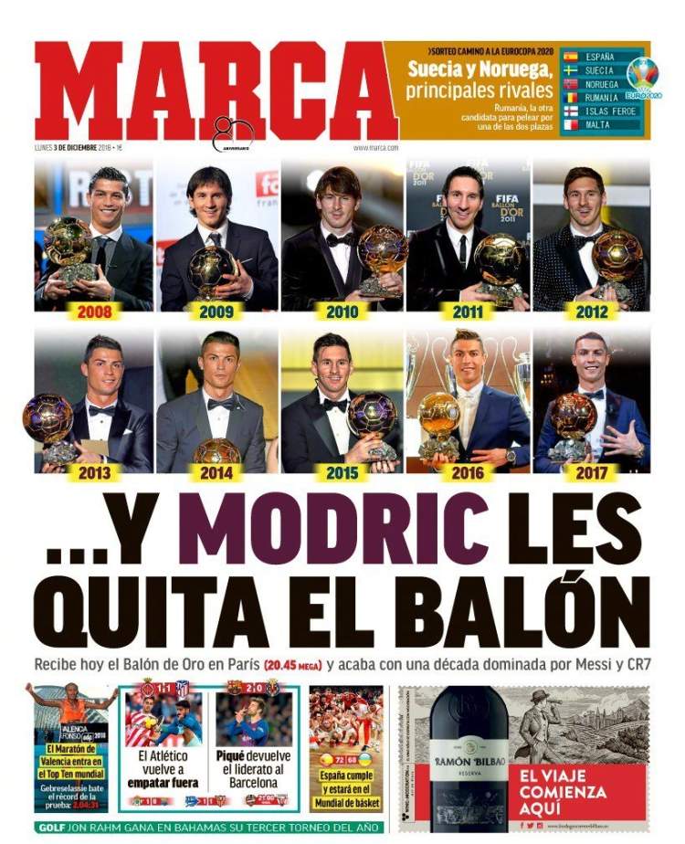 今天出版的马卡报已经宣布莫德里奇将获得金球奖