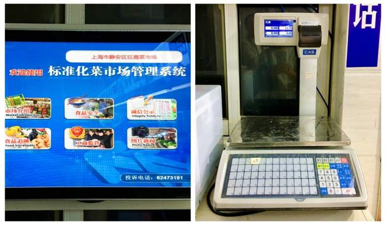 菜场采用标准化菜市场电子系统进行科学化管理。不仅有校秤台和微波炉等便民设施,投诉电话等也都公开透明。电子显示屏上共设置了六大板块,市场介绍、食品安全、诚信公示,食品追溯、工商监督和图片新闻,菜场办公室表示一些信息仍在不断更新中。