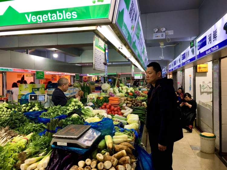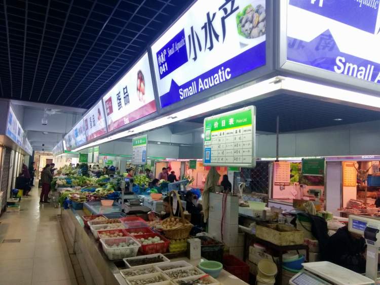 虽说周到君前去的当日下午买菜的人不多,但一切看起来都井然有序。货架上的蔬菜新鲜丰富,豆制品、河鲜、鱼类的摊位也被打理得整洁干净,完全不再是以前到处暗搓搓还弥漫着一股鱼虾腥味的样子。除了阿姨爷叔,还有一些年轻姑娘在挑选菜品,大家都轻声细语,感觉非常“嗲”。
