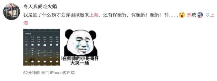 看看这北方和南方的温度差,连见惯世面的中央气象台微博小编都在惊叹。