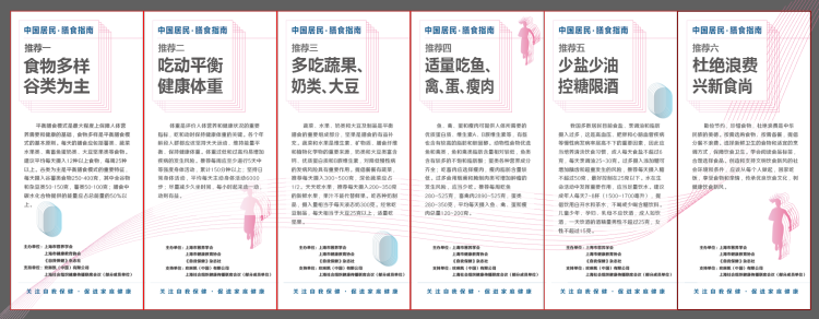 每天的膳食应包括薯类、蔬菜水果类、禽畜鱼蛋奶类、大豆坚果类等食物。