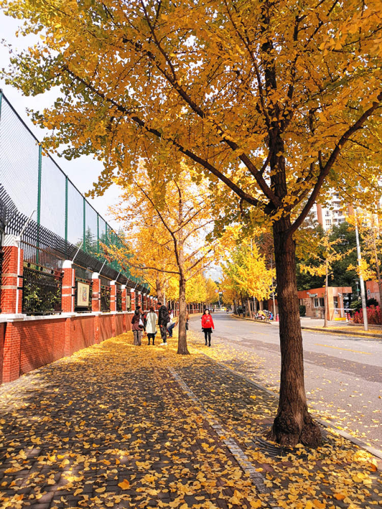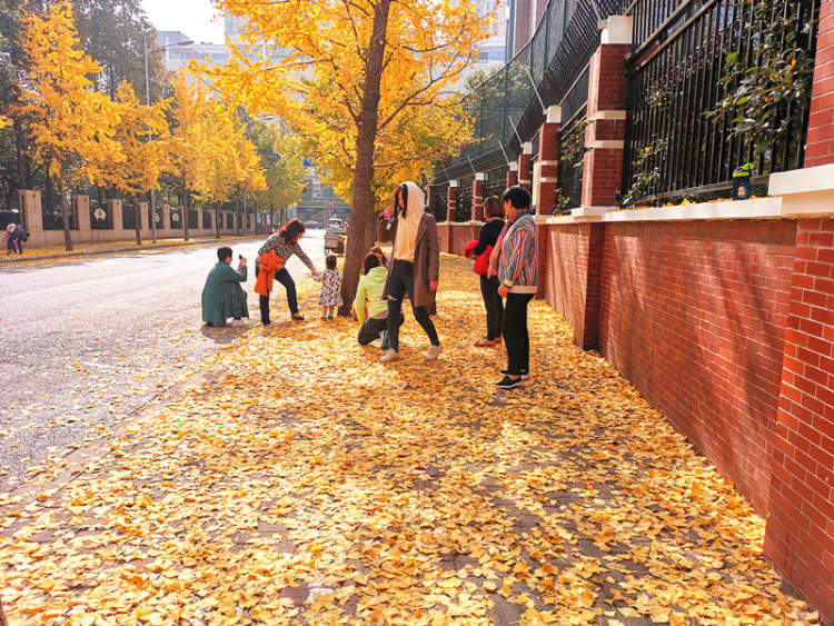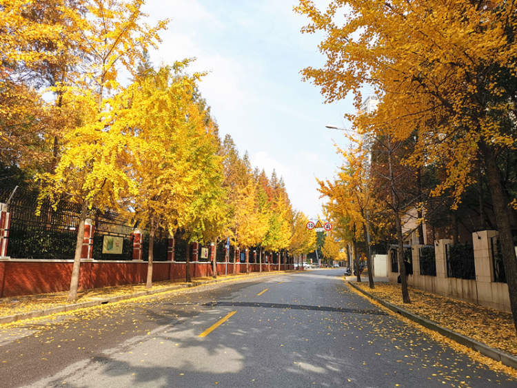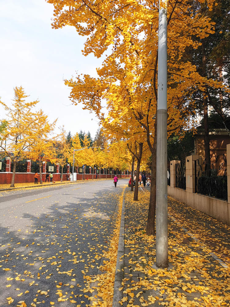 天中路的银杏叶+红墙