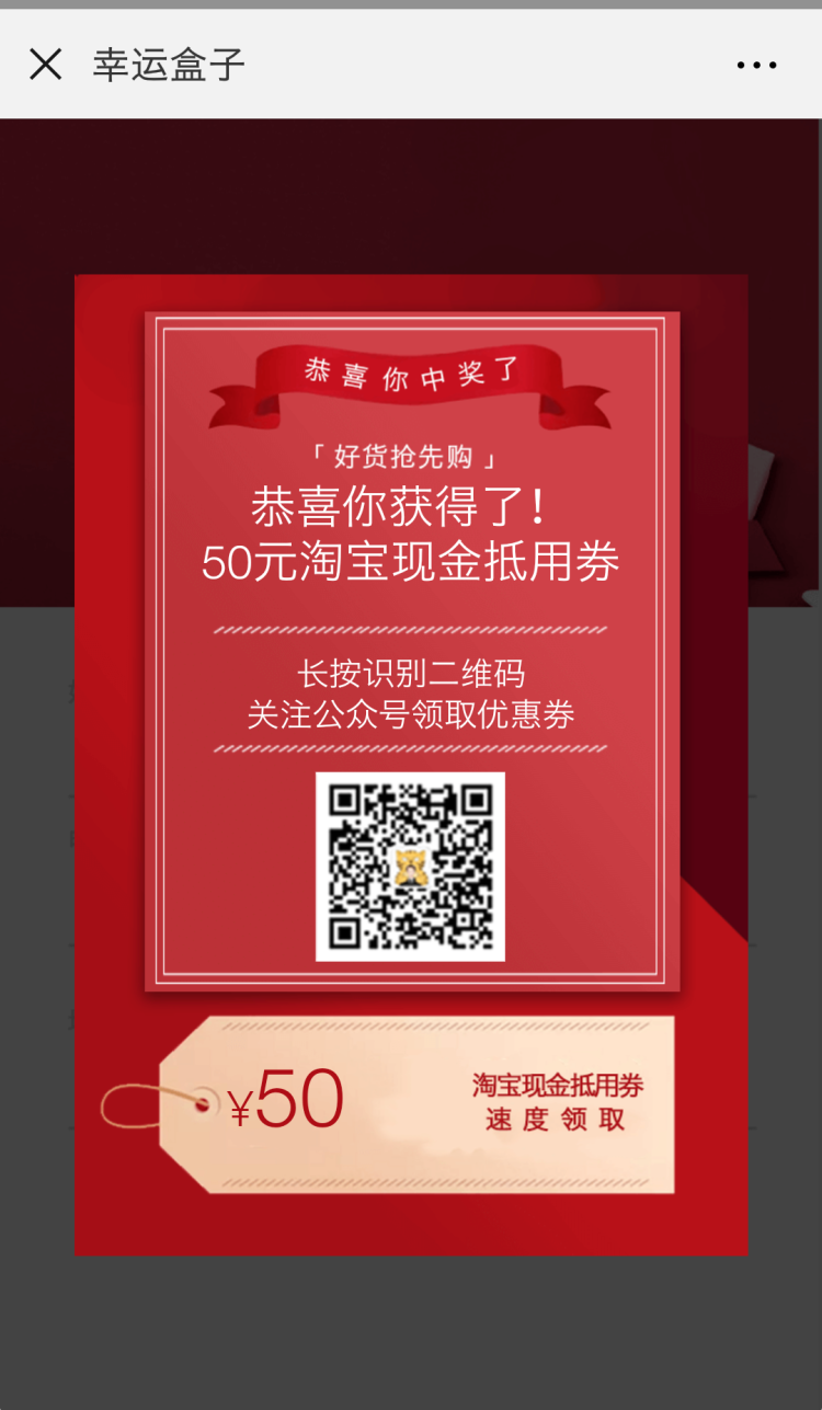 然而,小叶和那些大奖根本无缘啊,被一张50元优惠券打发了,可笑的是,在幸运盒子的微信公众号里怎么也找不到这张优惠券到底在何方!