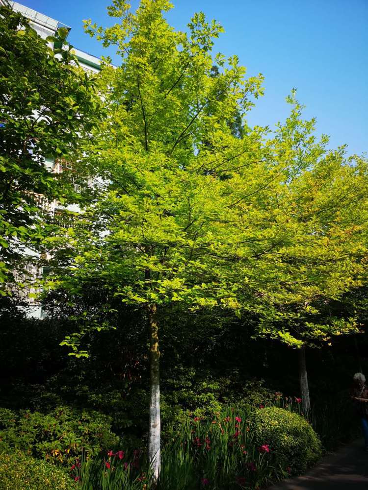 听名字,大家应该就明白了。娜塔栎不是咱上海或者华东地区的“土著”。它原产于北美,在美国东南部有较大分布。据说,在北美的原始森林里,它们如参天大树,蔚为壮观。娜塔栎不仅景观效果较好,而且适应性强,耐水湿,抗城市污染能力强,是优良的行道树种选择,可在庭院、公园等处单植或丛栽,也可与其他绿叶树种搭配造景。