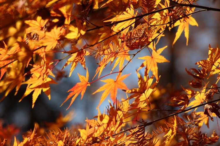 据悉,不同的树种变色时间有早晚。在上海,银杏、无患子相对早一些,娜塔栎稍晚,但没有大风等不利天气的话,可以维持红叶效果至12月末叶变成枯黄色,部分叶片至次年2月落叶。