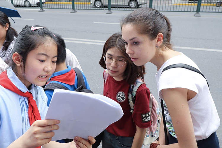 学校还组建了“24路社团”,由学科教师、家长志愿者担任社团指导教师,开展陕西路地理、陕西路历史、陕西路文脉等专题活动,甚至外面大学的学生也被吸引过来参加活动。例如今年的“24路——我是小导游”活动,华东师大国际汉语文化学院的留学生分为7组,分别与江宁学生结对,沿着江宁学校五年级的14位学生设计的路线,一起从24路公交终点站出发开展寻访与考察活动。