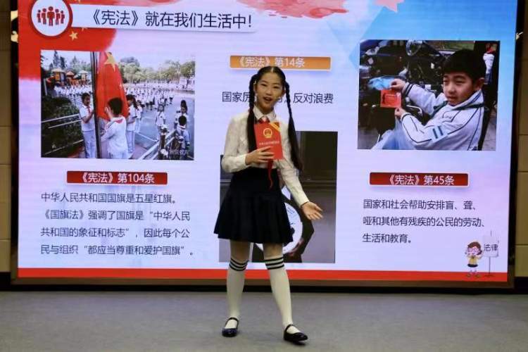 宪法是我国的根本大法,是治国安邦的总章程。今天早上,上海政法学院学生会主席萨茹拉,代表全市大中小学生,宣读了进一步做好宪法法律学习宣传的倡议,立志做一名尊法、学法、守法、用法的好少年。