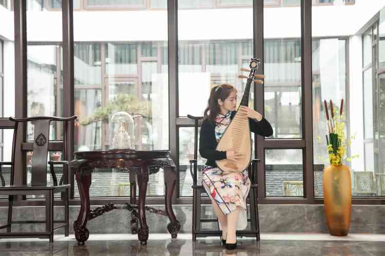 一进门,就有穿着苏式旗袍,抱着琵琶弹奏的妙龄女子映入眼帘;一旁的绣娘正在耐心地、一针一线的,绣着苏绣。