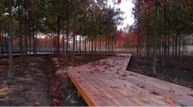 香朵开心农场的一大特色便是成片的枫叶林,尤其到了深秋时节,高耸的北美枫与水杉,交相呼应,勾勒出一副色彩鲜明的油画。在茶余饭后,缓步走过石桥,踏着青石板路,向着枫林深处漫步,听风吹叶动,看层林浸染,煞是明丽。