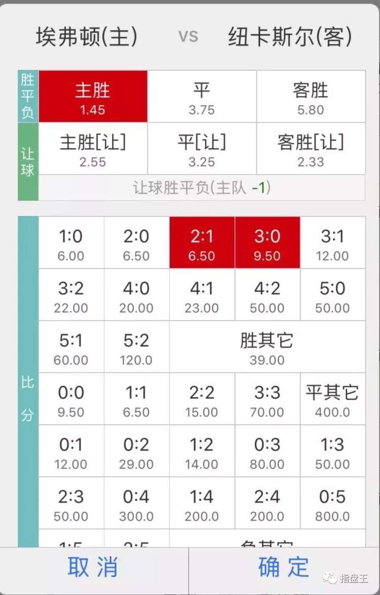 019 英超 03:45 埃弗顿 VS 纽卡斯尔 埃弗顿胜;比分:2:1、3:0、3:1、4:0,重点比分2:1
