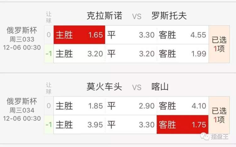 如果早场的日皇杯“给面子”晚间俄罗斯杯的胜算还是蛮高的: